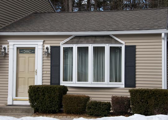 Vinyl bow windows appear more rounded in projection because they have a 10° angle. They are available using casement or a picture windows as well as double hung windows.